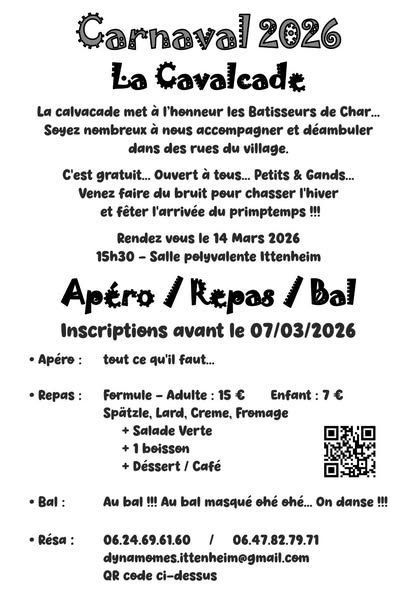Venez fêter avec nous l'arrivée du Printemps lors du Carnaval d'Ittenheim le samedi 14 mars 2026 !